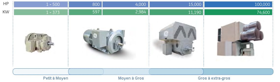 La puissance d'un moteur est mesurée en HP ou kW. Selon sa puissance, le moteur est classifié comme petite, moyenne, grande ou extra-grande puissance.